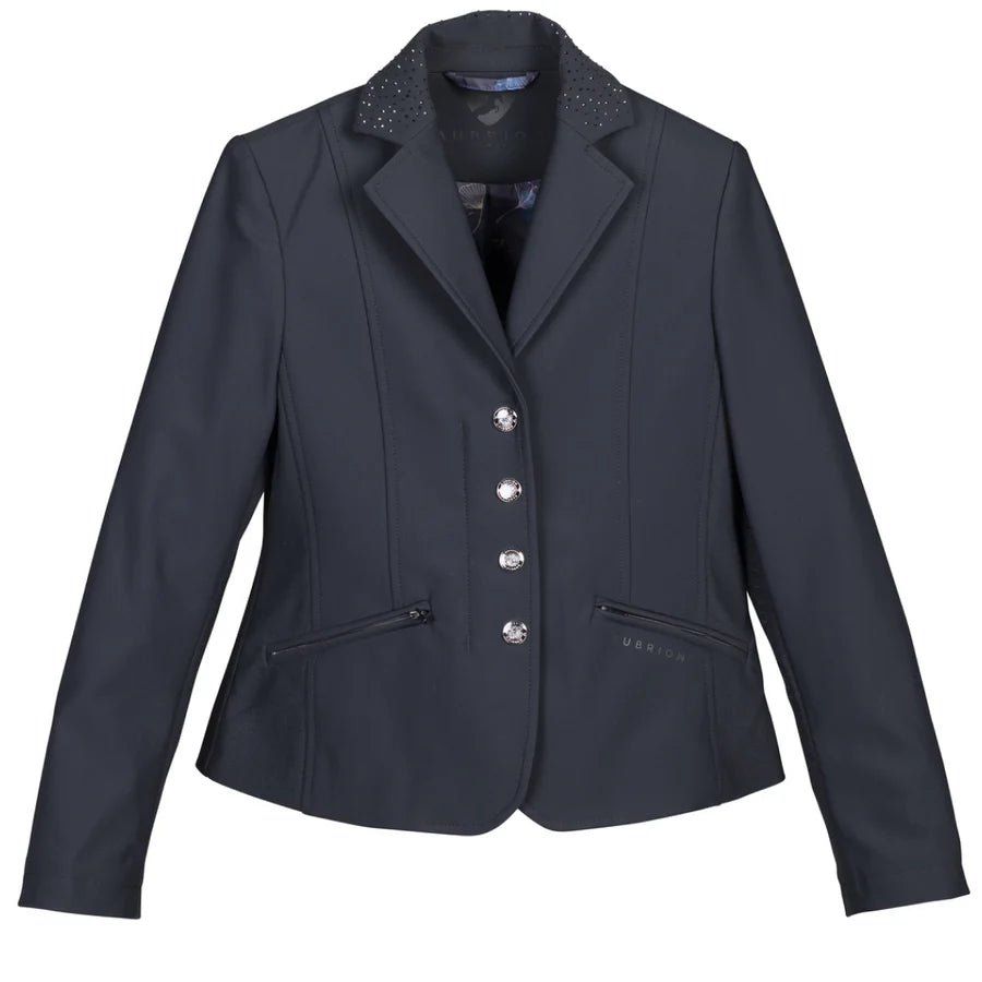 The Shires Aubrion Ladies Newton Show Jacket shimmers under the spotlight and has a modern saddle-skimming length with a slim contour shape.